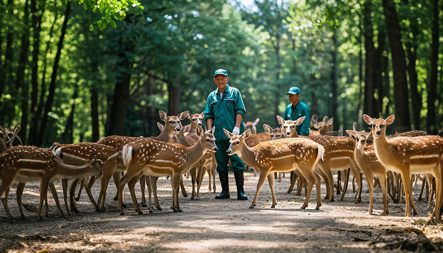 其中“京西鹿谷梅花鹿生態養殖繁育基地”,群山環繞、空氣清新、水源優質且充足,為梅花鹿的生長營造了良好的自然條件。基地內植被豐富,有大量梅花鹿喜愛的嫩草和樹葉,充足的食物資源保障了梅花鹿飲食的多樣性。同時開闊的空間和適宜的氣候條件,為梅花鹿的生存提供的得天獨厚的優勢,使其能夠自由地繁衍生息。